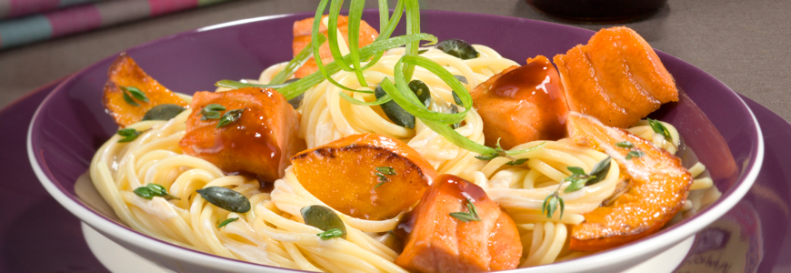 Чули ли сте за спагети с риба, а с тиква, а със сметана. Представете си, че добавяме и соев сос Кикоман и се получава чудесна оригинална рецепта. Да действаме! Продукти: 400 г мека тиква 4 с.л. зехтин 7-8 с.л. Кикоман соев сос 500 г филе от бяла риба или друго лимонов сок 500 г спагети […]