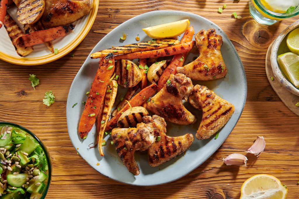 Сочни, лепкави пилешки крилца с аромат на мед и карамелизирани зеленчуци. Толкова лесно и толкова вкусно!