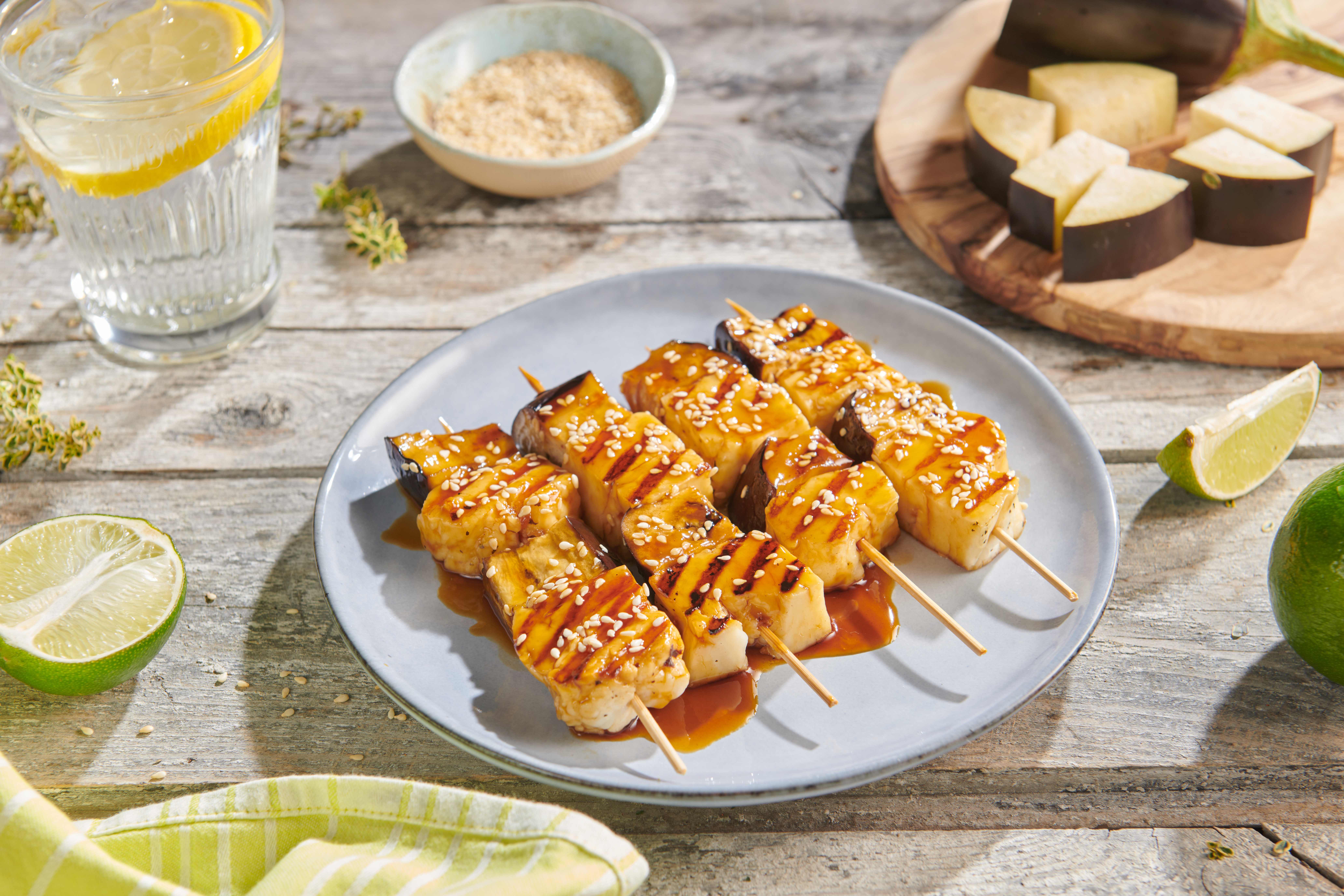 Отлична идея за веджи шишчета в японски стил с отлично овкусен патладжан и сирене халуми, носещи умами аромата на класическия Kikkoman естествено ферментирал соев сос. Насладете се на BBQ сезона с още BBQ рецепти от Kikkoman!
