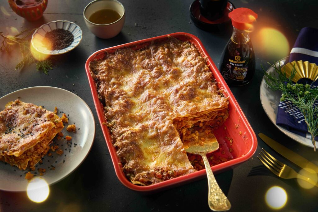 Открийте свеж поглед върху лазанята, където леща и зеленчуци се смесват с уникалния умами аромат на естествено ферментирал соев сос Kikkoman, всичко това покрито с вкусна коричка от пармезан и сусам, която ще ви накара да поискате още една порция.