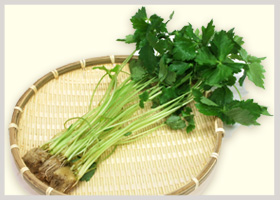 Това е билка, подобна на детелината и е от същото семейство растения. Основно може да се яде със сашими или мариновани отново в соев сос. Отсега да вметна, че сашими-то представлява плато от сурови риби или морски дарове без други добавки.