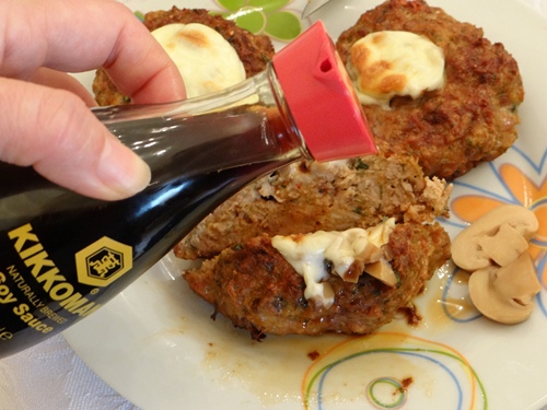 Хлябът се накисва във вода. Лукът се почиства и се нарязва на ситно. Магданозът също се накълцва и заедно с лука и отцедения хляб се добавя към каймата. Подправя се с 2 ч. л. соев сос Kikkoman, чубрика, черен пипер и всичко се намачква хубаво с ръка или вилица.