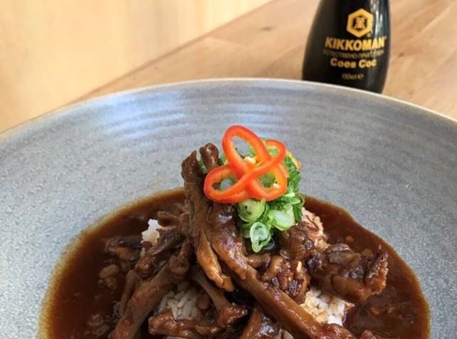 - Пържат се дълбоко в нагорещена мазнина до златисто. След като са готови, се отцеждат на кухненска хартия. Така готовите крилца се поставят в тиган и се добавя соевият сос Kikkoman, кетчупът, табаско сосът, сушеният лук, чесънът на прах и ситно нарязаната целина.