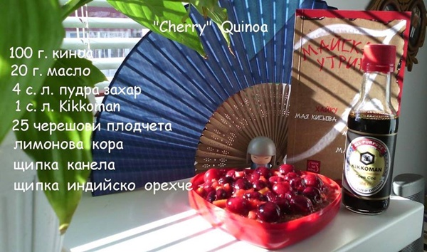 Мая Кисьова “плува” в японски води, ама наистина – тя пише хайку, играе в хайку спектакли, съавтор е на късометражен филм с елементи на хайку, готви рецепти със соев сос. Тя участва в последния ни конкурс “Сготви вкусно с Кикоман” и спечели със своите 4 рецепти. Днес ви предлагаме една от тях – Десерт със сооев сос Кикоман. Може да ли звучи странно, но е факт. Опитайте индиректно нейните “Челеши с киноа”.