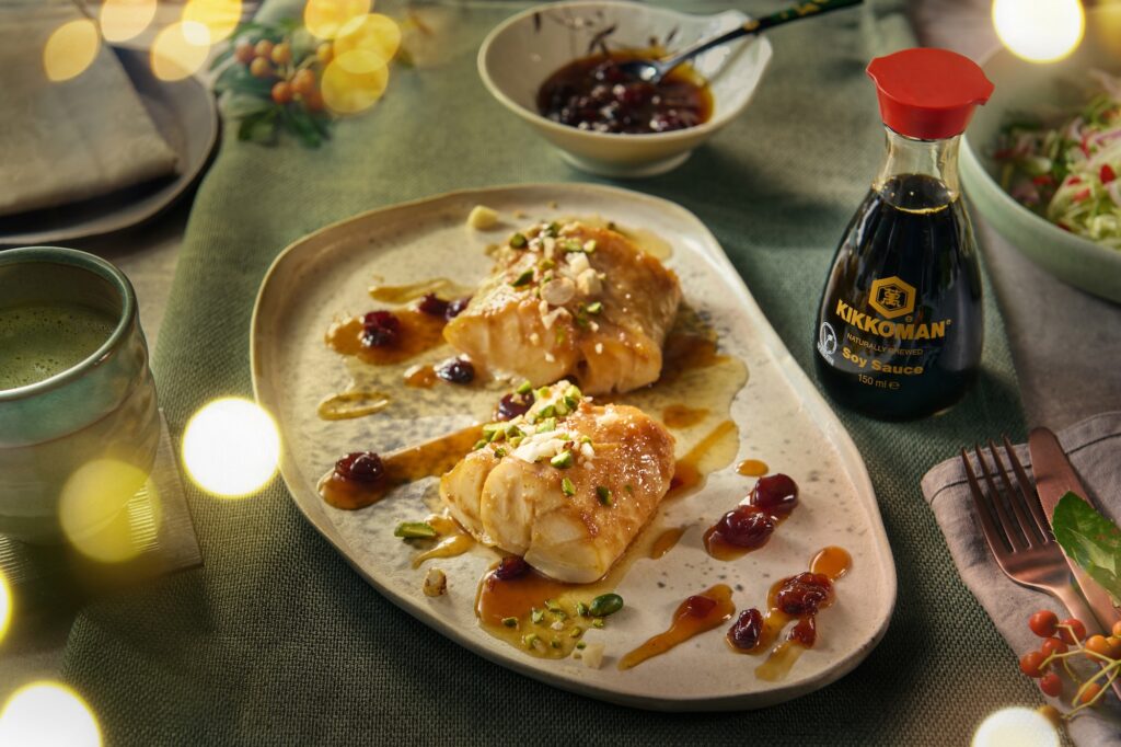 Ястие, което съчетава най-доброто от Изтока и Запада, съчетавайки пикантното богатство на нежна, маринована в мисо треска, изпечена до съвършенство с тръпчивия сос от червени боровинки и хрупкави печени ядки. Разбира се, уникалния умами аромат, без който нищо от този съвършен вкус нямаше да е същото, е гарантиран от естествено ферментирал соев сос Kikkoman.