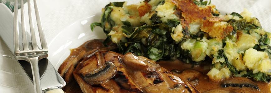 Затова е време да представя следващата рецепта, след която ще си оближете пръстите: крем гъби и пиле с картофено пюре и зеле.