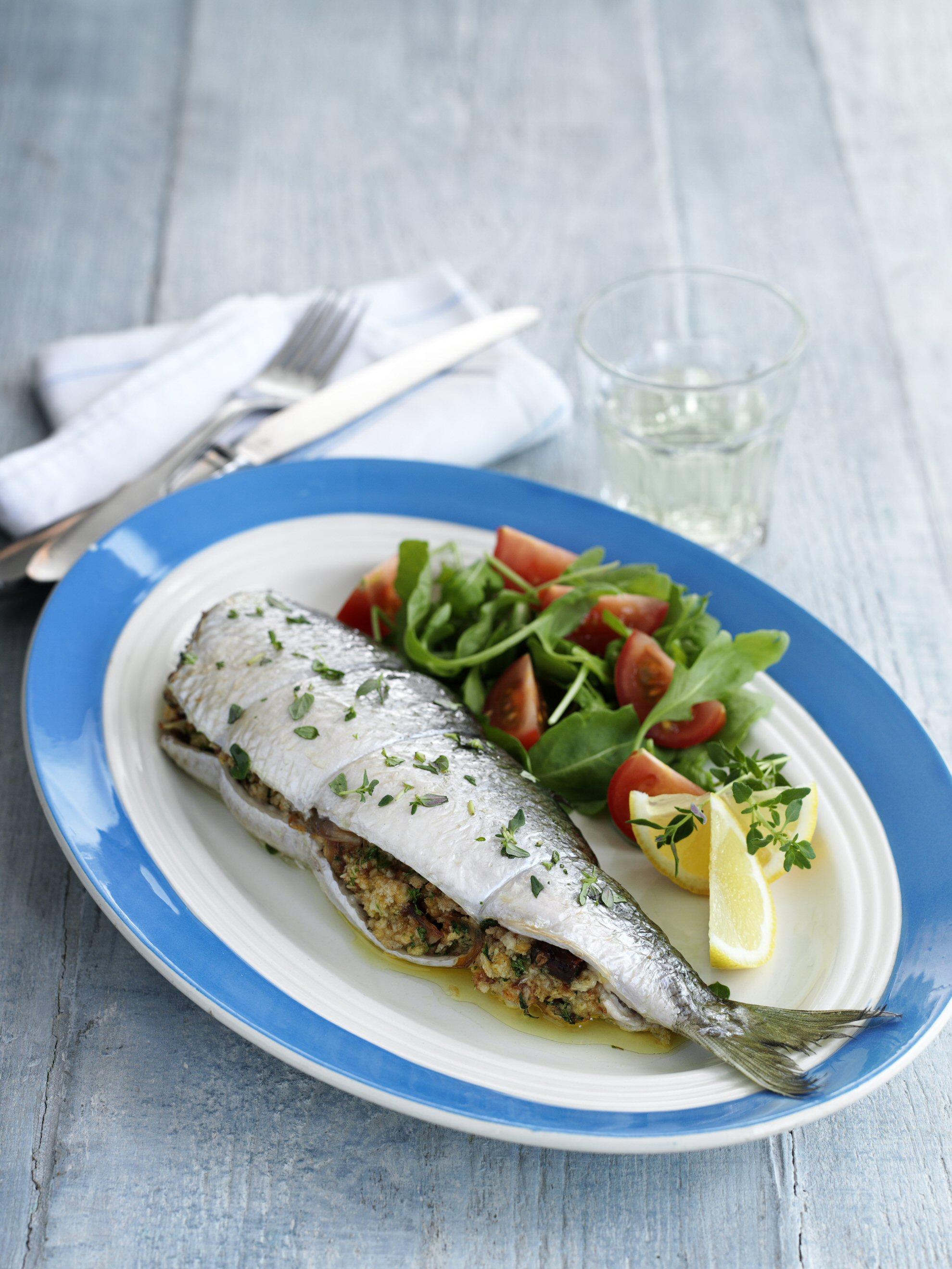 ВариантиСкумрия, пъстърва или сардини могат да се готвят по същия начин. Ако предпочитате, пригответе рибата като две филета, с плънка по средата, и завържете с канап.
