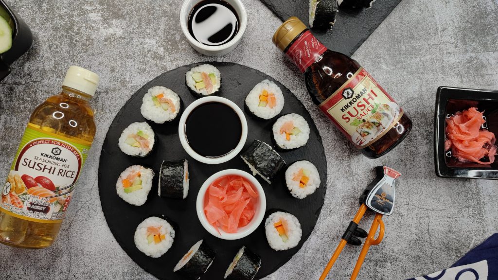 След няколко особено вкусни BBQ рецепти Теди Титова от Домашни вкусотии потъва в дебрите на сушито в първия си опит за домашно суши. Не сме се и съмнявали, но трябва да отбележим, че резултатът е особено сполучлив! Тази рецепта е със сьомга, но може да я замените с каквото решите, спрямо вашия вкус – важното е да направите веднъж суши вкъщи, а след това ще се убедите колко лесно и вкусно е и ще станете истински майстор! В тази рецепта на помощ идват Kikkoman оризов оцет за суши, естествено ферментиралият соев сос Kikkoman и Kikkoman сос за суши, който ще представим съвсем скоро.
