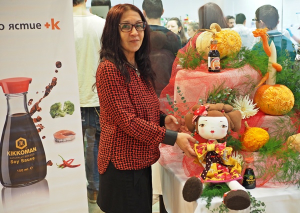 Събитието беше специално за готвачи от София и страната, но аз също бях там, за да снимам, запиша и да ви предам по мъничко от чудесната атмосфера. Датата не беше избрана случайно – на 8 февруари започна Лунната нова година по източния календар. Декорацията на масата с продукти Kikkoman беше възложена на карвинг декоратора Веселина Славчева, която беше сътворила приказка от тикви – композиция от цветя и огнен дракон!