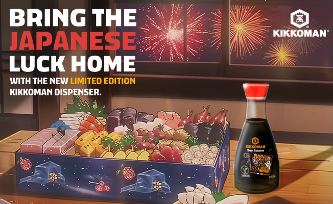 Точно една такава кутия, пълна с osechi-ryōri, краси новия дозатор Kikkoman лимитирана серия! Естествено ферментиралия соев сос Kikkoman също е неразривно свързан с японската история - добавя перфектния умами вкус както в японските, така и европейските празнични ястия.