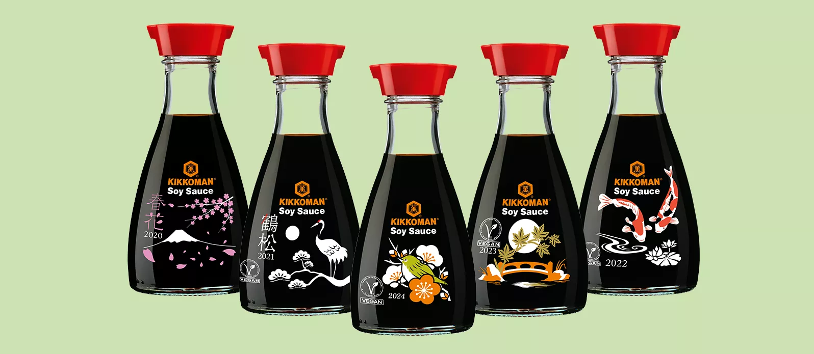 КРАСИВАТА KIKKOMAN ТРАДИЦИЯ. С нашата специална лимитирана серия за 2024 г. – второто тази година – ние предлагаме ексклузивен комплект от специално проектирани дозатори във вашата кухня за шести път.
