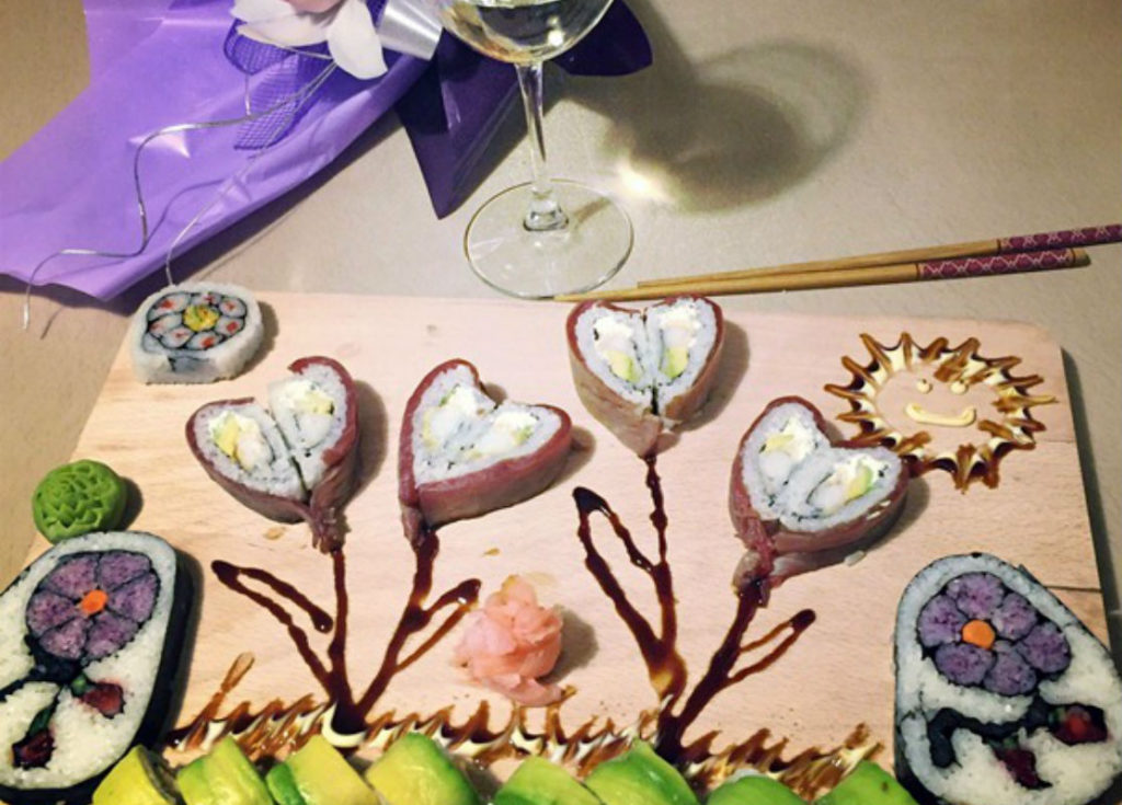 За аранжировката: въображение, импровизацията е за предпочитане. Колкото по-абстрактно е подредено сушито, толкова клиентът ще е по-доволен и ще “се нахрани с поглед”