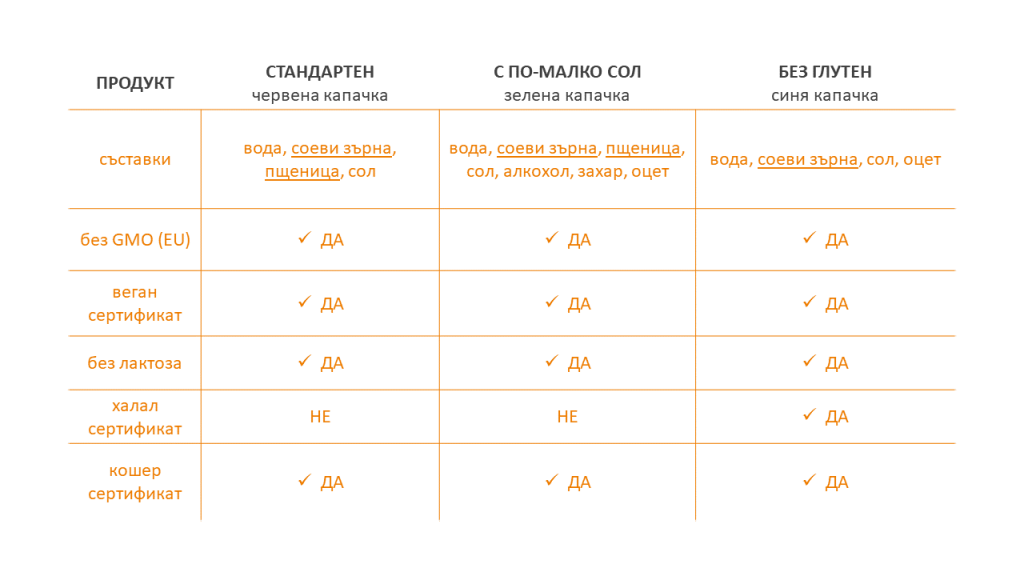 Важно: продукти на Kikkoman са съставени единствено от не-ГМО съставки.