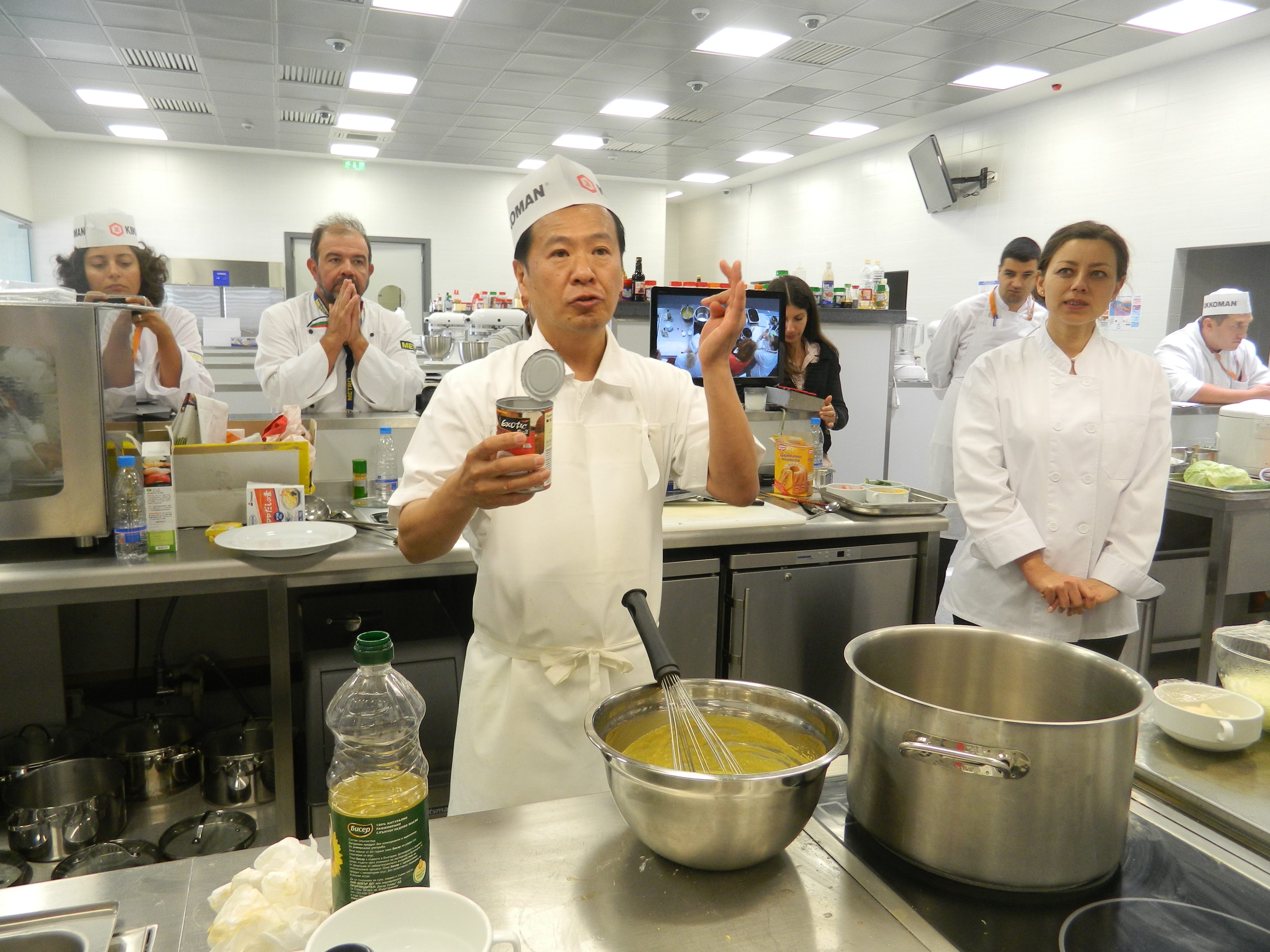 Г-н Хайамизу демонстрира приготвянето на 6 изключително вкусни ястия, а ние от своя страна показахме професионализъм в дегустацията и омитахме чиниите за секунди 🙂 Просто да си оближеш пръстите! Изобилие от вкусове, за които не съм и мечтала – пилешко, свинско, ориз със сьомга, миди, омлет…всичко беше познато от предишните събития, но в същото време имаше непознато и различно. И днес няма да пропусна да знаете 🙂