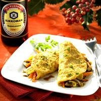 Разбийте яйцата с пипера и соевия сос. Загрейте олиото в малък тиган и запечете 8-те мини омлети при ниска температура до златисто. Добавете зеленчуците към мини омлетите и ги обърнете. Поръсете с пресни подправки ако желаете.