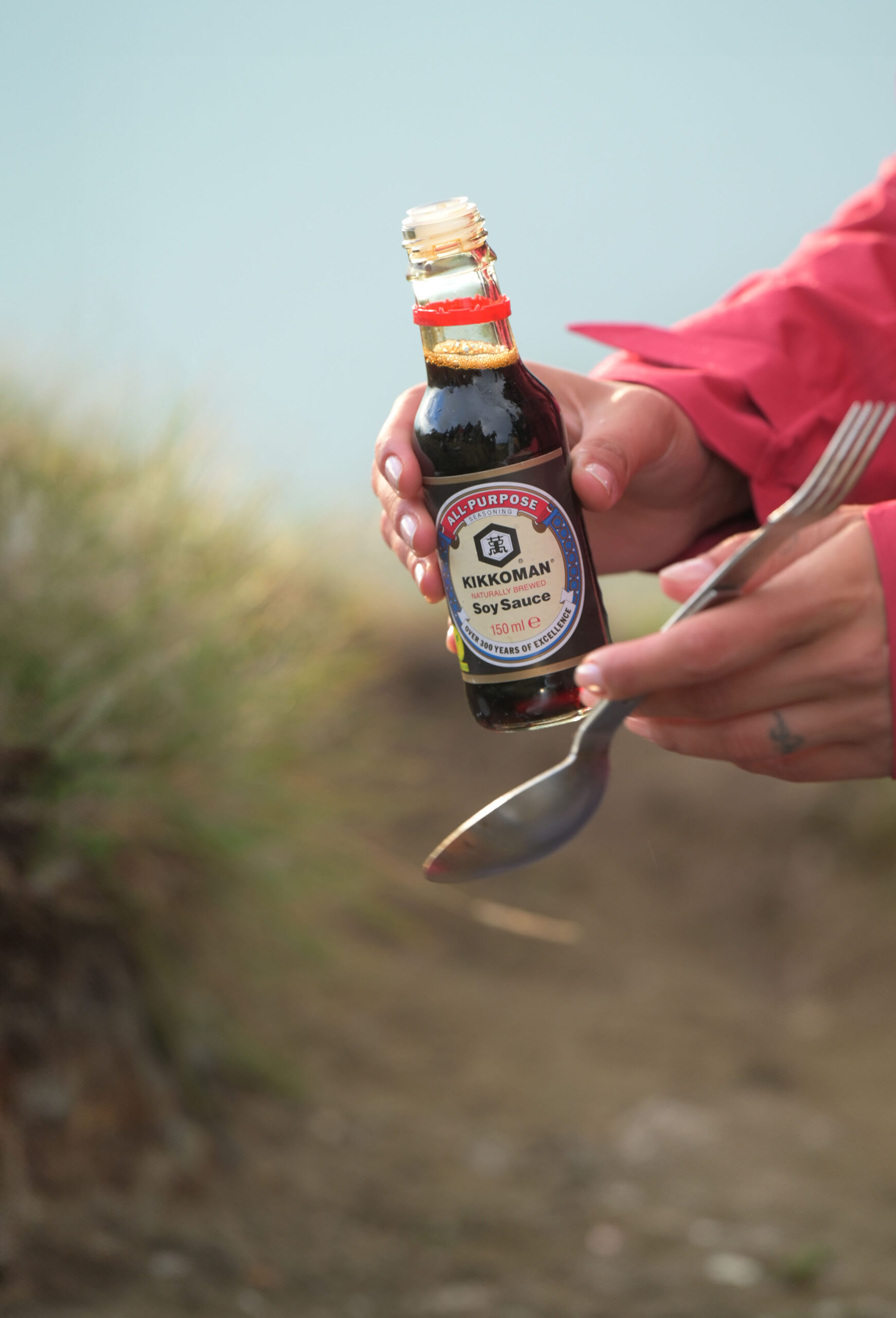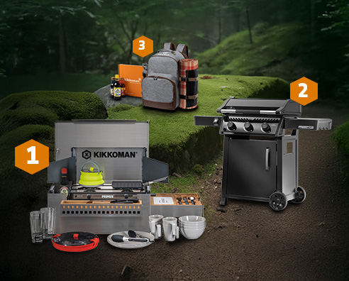 Практична и удобна: здрава раница за открито с логото на Kikkoman, пълна с необходимите неща за пикник и одеяло за пикник в стилен ретро дизайн. Разбира се, заредена и с правилните подправки за всеки вкус: Kikkoman Ponzu, Kikkoman Poke и Kikkoman Kimchi!