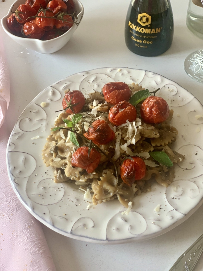 Идва ред на следващата вкусна рецепта, част от кампанията ни “Избери изцяло натурален вкус“. Днес тя е на Маги Пашова, която ни представя една от 4-те основни съставки на Kikkoman естествено ферментирал соев сос – пшеницата. По този повод Маги ни е приготвила изумителна веган паста с гъби и чери домати.