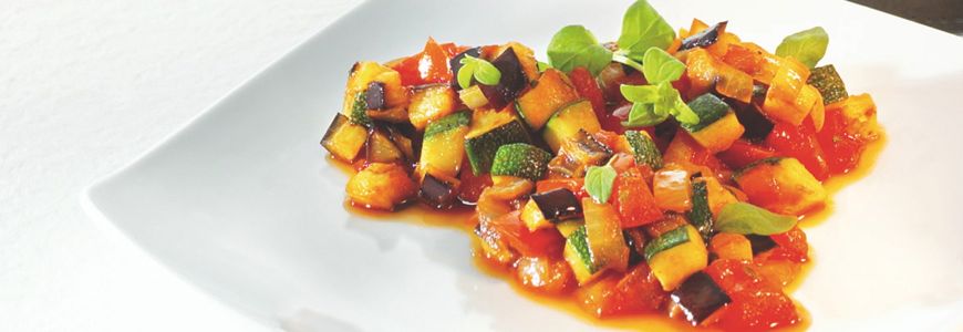 Нарязваме лука, тиквичките, патладжаните и доматите на кубчета. Задушаваме в горещ зехтин като добавим и чесъна. Добавяме и Sukiyaki соса и доматения сок и оставяме да заври.