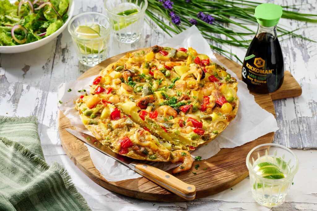 Идеални за похапване в движение или за кутията за обяд, тези хапки тортия съчетават пикантни печени картофи, микс от морски дарове, едамаме и чушки, фино овкусени с Kikkoman LIGHT с по-малко сол. Лесни за правене, рязане и опаковане за възхитително кулинарно изкушение!