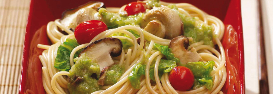 Днес искам да споделя с вас една лека, постна рецепта за спагети с няколко вида гъби, савойско зеле и Кикоман соев сос. Вкусно, лесно и красиво поднесено, тя ще очарова вашите гости!