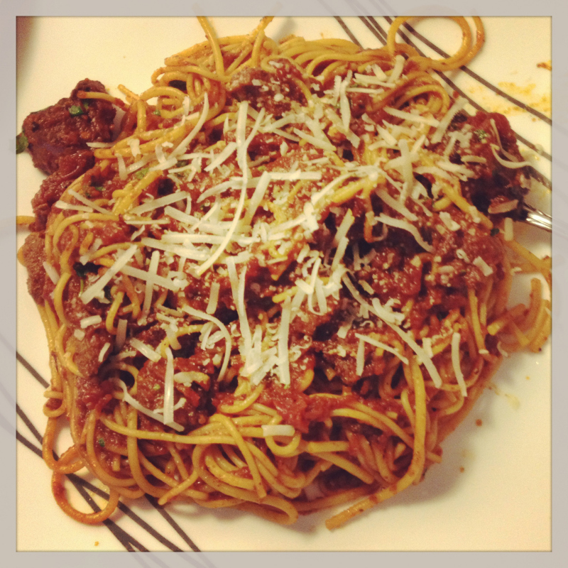 Спагети с телешко, чили и соев сос
