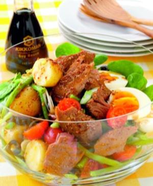 Нали помните, че салатата може да замести основното ястие – особено, когато се състои от повече продукти, и не само от зеленчуци. Понеделникът по традиция е труден ден – като начало на работната седмица. Затова днес избрах за вас една бърза, лесна, вкусна, засищаща, цветна, ориенталска салата с риба и с японското участие на Кикоман Терияки марината.