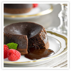 Подготвяме 6 отделни метални купички за печене, като ги намазваме с масло. В друг съд смесваме шоколада, останалото масло и соевия сос и ги поставяме в микровълнова фурна за 2 минути. Към разтопения шоколад добавяме брашното, захарта, ванилията, 3 цели яйца и 3 жълтъка и разбъркваме добре. Готовата смес изсипваме в намазаните с масло купички, а тях печем за 10 минути в предварително загрята фурна. Печем до готовност – около 35 минути на 210 г Целзий.