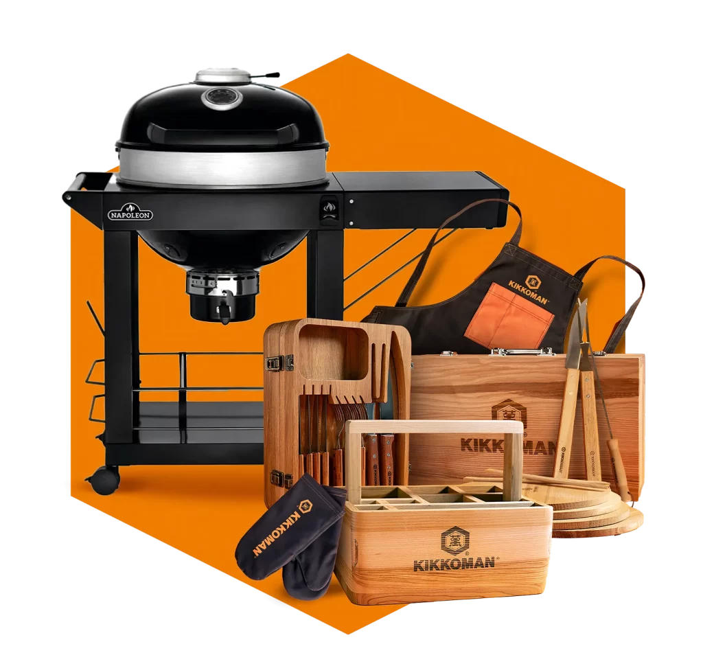 И това не е всичко! Дори и да не се пребориш за барбекюто, имаш шанс да участваш за 1 от 25 седмични умами BBQ аксесоара. Всеки от тях ти дава всичко, от което се нуждаеш за перфектния BBQ резултат – Kikkoman комплект професионални ръкавици за скара и престилка, луксозен BBQ комплект прибори за месо, дървен BBQ органайзер за сосове и прибори, луксозен сет BBQ прибори! И, разбира се, най-важната съставка – специалната BBQ селекция от Kikkoman продукти!