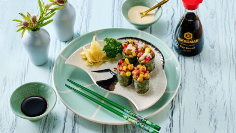 Това веган суши се сервира в специални „гункан“ — суши лодки, гарнирани с печен нахут, сладка царевица и нар за неустоимо сливане на текстури и умами вкусове. Свежо, ароматно лакомство, което няма да искате да пропуснете! А ароматът му е гарантиран от уникално Kikkoman трио: Kikkoman оризов оцет за суши, Kikkoman Терияки марината и ½ … Продължете с четенето на Веган суши гункан от нахут
