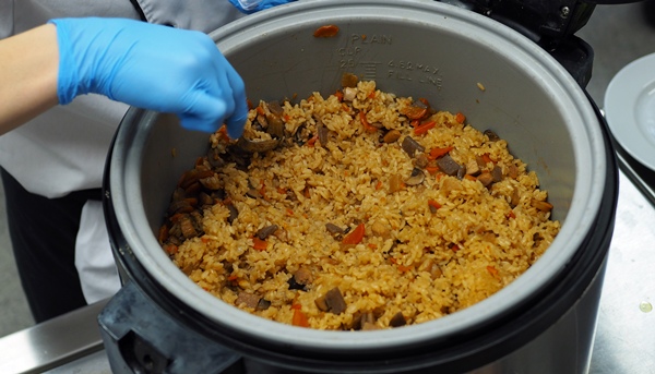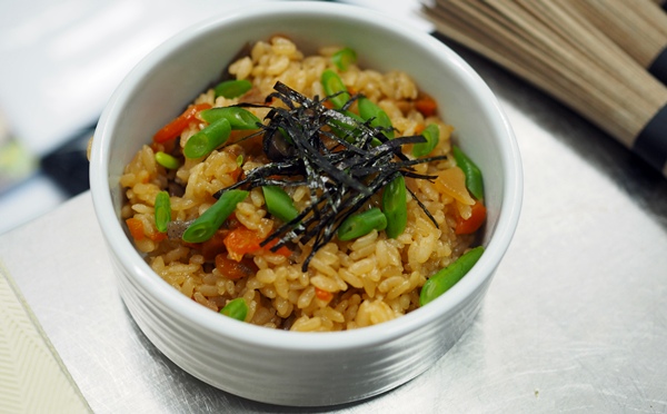 Оризът – тази типична източна храна – получава оригинален вкус в рецептата на японския готвач г-н Кийоши Хайамизу . Едно от ястията, които той сготви беше “Два вида варен ориз с пиле и зеленчуци”. Демонстрацията на приготвяне на японска кухня с продуктите на Kikkoman се състоя през февруари в София и беше предназначена специално за готвачи. Ето и самата рецепта: