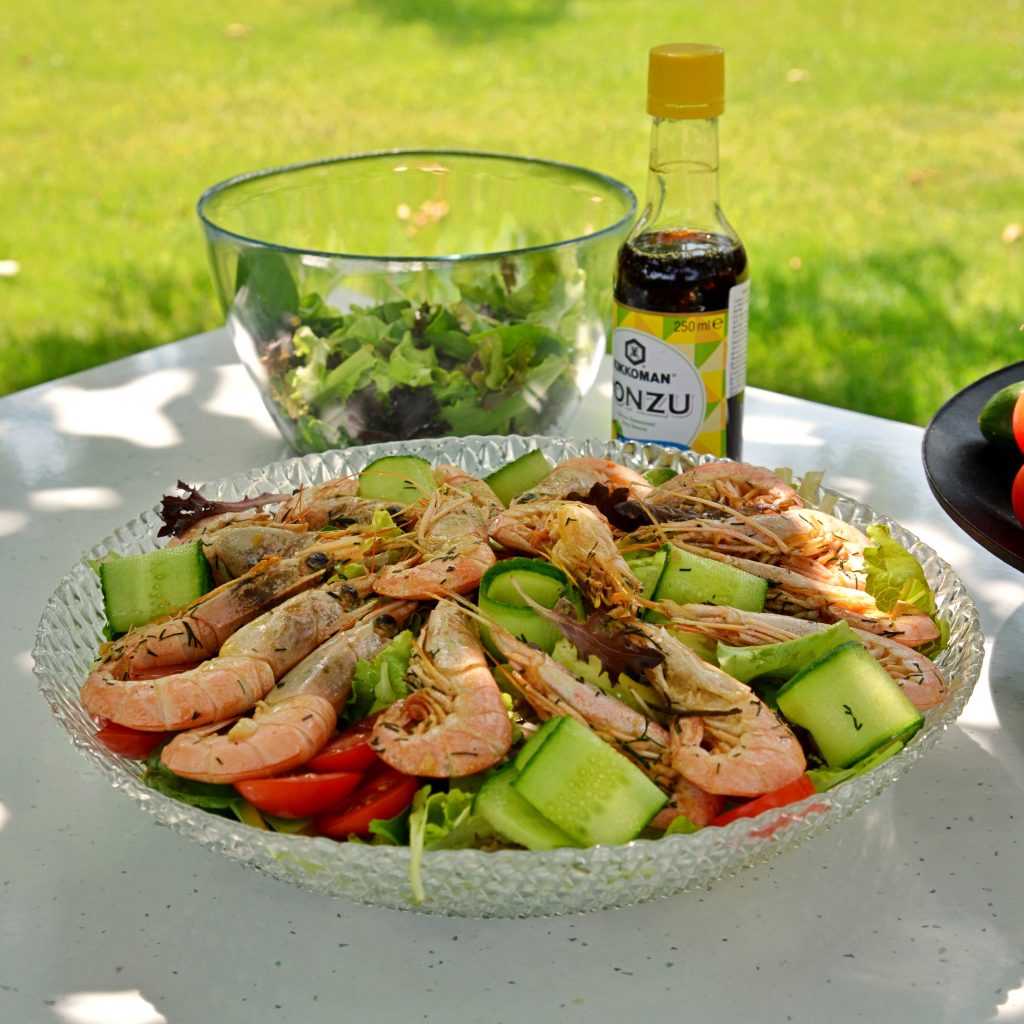 Днес ти предлагаме да видиш изборът на Теди Титова от Домашни Вкусотии – приказно лятна салата със скариди, авокадо и PONZU, разбира се.
