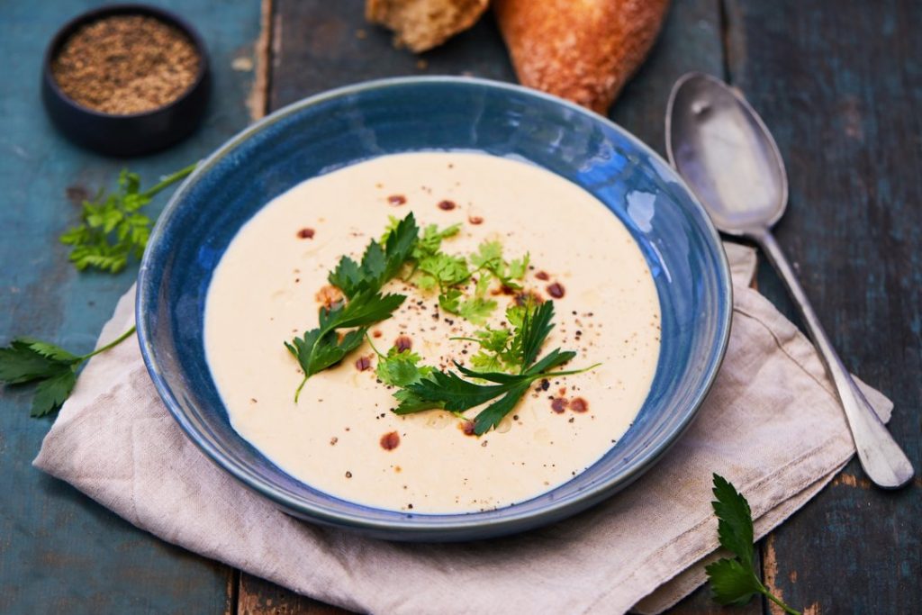- Добавете млякото и сметаната и разбийте супата. Сервирайте с пресни билки и топъл хляб.