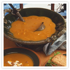 Отсипваме 1 ч.ч. тиква. Пасираме останалата тиква заедно с течността. Връщаме я в тенджерата.